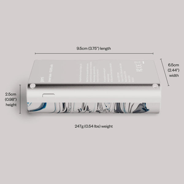 Each power bank is hand-marbled from flexible plastic waste, making every one unique.